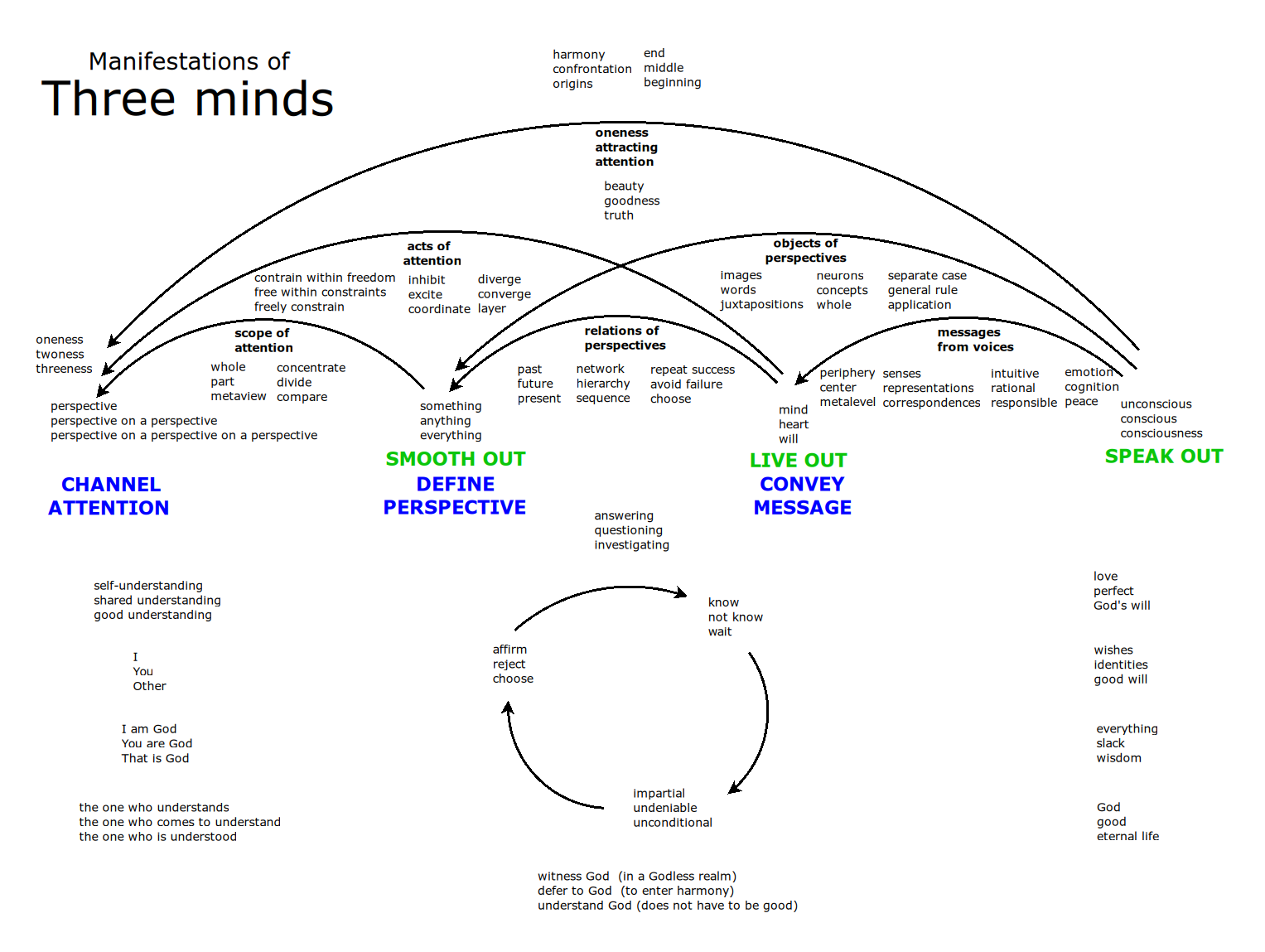 | 1+1+1+1 | the increasingly objective abstract contexts by which the fundamental subject is referenced | persons | 4 persons | God (is God) | I (am God) | You (are God) | Other (is God) |